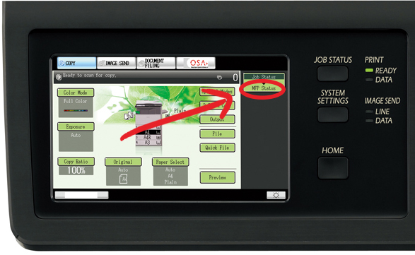 To check your toner level of the current Sharp range of photocopiers, the levels are conveniently displayed on the screen (pictured).